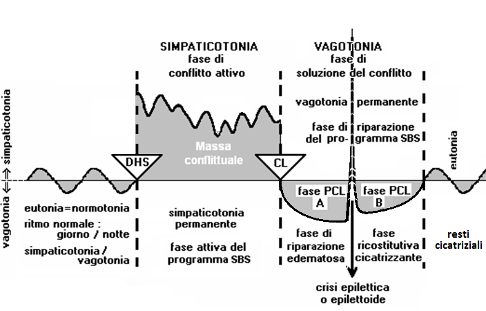 Qualsiasi manifestazione o sintomo nel nostro corpo ed anche quelle che venivano chiamate malattie mentali, è generata da uno shock biologico, chiamato DHS (Dirk Hamer syndrom, in onore a suo figlio). Un evento, situazione che accade nel proprio ambiente ci coglie inaspettatamente, drammaticamente e vissuto in solitudine, in pratica in contropiede, e che non si riesce a gestire.. A partire da quell'evento scatenante si attivano uno o più programmi biologici sensati o SBS, a dipendenza di come viene vissuto con il proprio ed unico sentito personale.